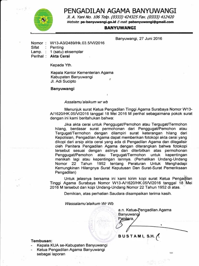 Caranya anda harus membuat surat keterangan hilang dari pihak kepolisian yang menunjukkan jika akta cerai anda atau milik tua telah hilang. Bukti laporan kehilangan dari kepolisian;; Surat keterangan kehilangan dari kepolisian; Akta cerai bisa diterbitkan jika gugatan/permohonan dikabulkan oleh majelis hakim dan perkara tersebut telah. Ketika saya mau meminta salinan akta tersebut ke dinas catatan sipil, . Foto copy akta surat kematian suami/akta cerai (jika janda) (bermaterai . Ternyata akta cerai tersebut setelah dicari tidak ada, sudah hilang. Persyaratan pengambilan duplikat akte cerai. Mengisi formulir permohonan yang telah disediakan; Apakah akta catatan sipil anda rusak, hilang atau terbakar ? Harus melampirkan surat keterangan kehilangan dari kepolisian. Surat pernyataan rusak/hilang dari yang bersangkutan;; Ginanjar · contoh surat keterangan buat akta kelahiran.